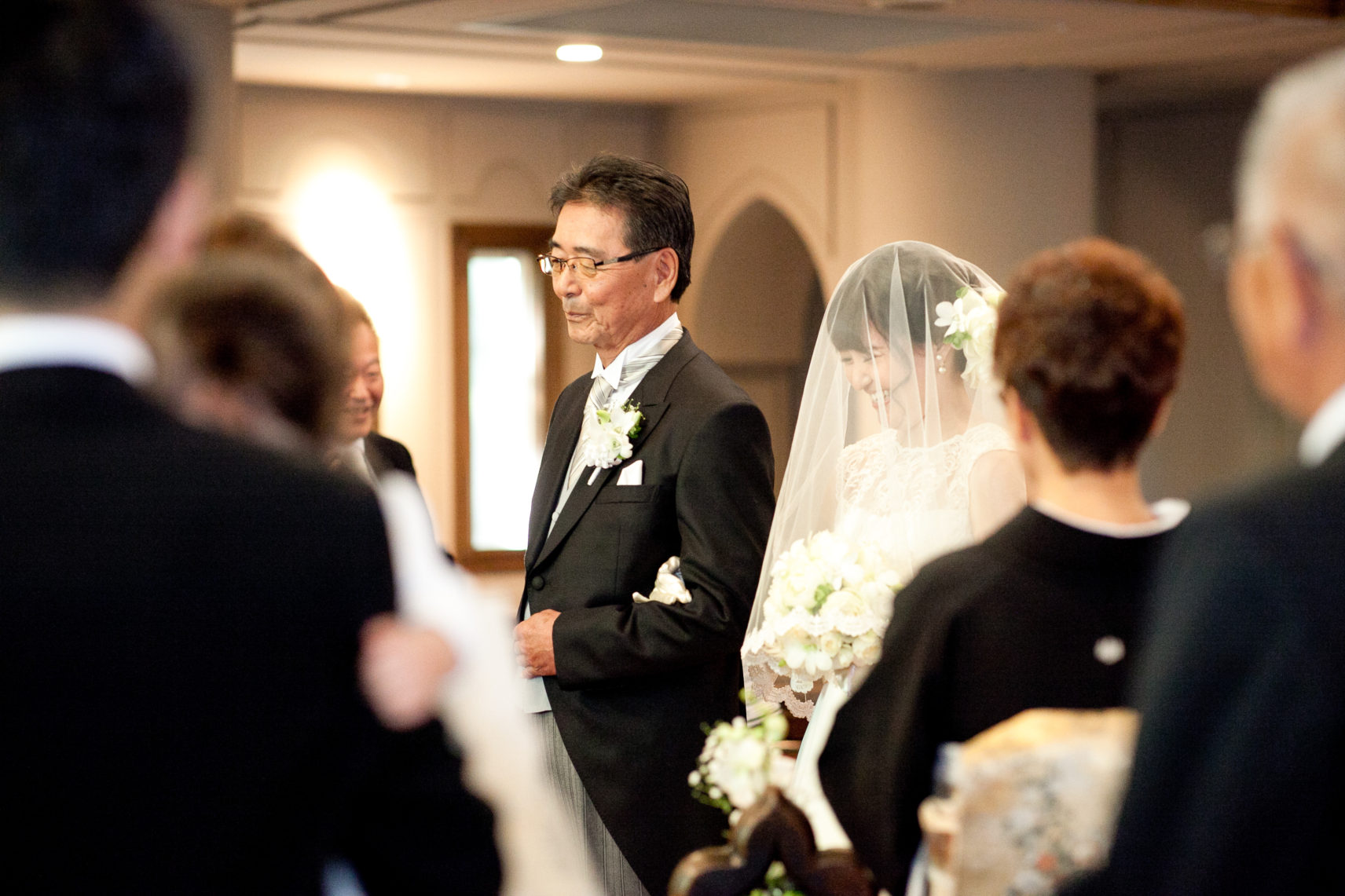 父上様はモーニングコート、母上様は留袖を着用される方が一般的です。最近では留袖ではなく、フォーマルドレスを着用される母上様もいらっしゃいます。結婚式では両家並んでのあいさつの場もありますので、和装・洋装がバラバラにならないよう、事前に着用衣裳の相談をしておきましょう。