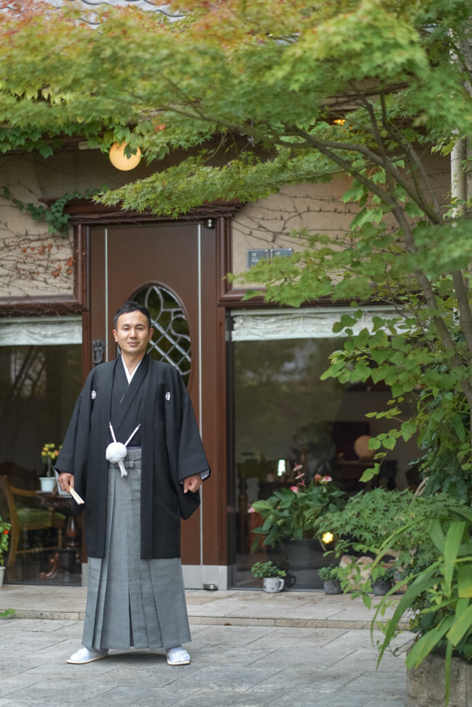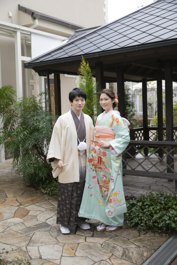 新郎様は、黒紋付羽織袴・色紋付羽織袴を着用します。