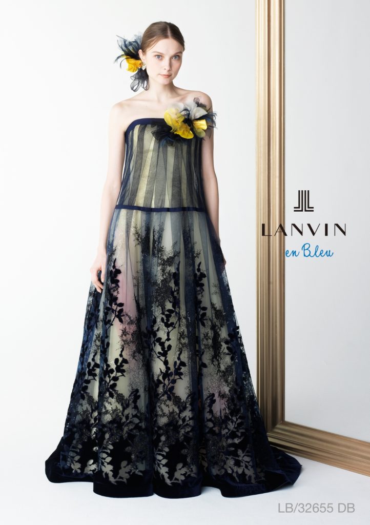 パステルカラーのドレスとは一味違う、大人の女性だからこそ、かっこよく着こなしていただけるカラードレス。パリ発祥のファッションブランド『LANVIN』の世界観を詰め込んだモード感溢れる一着です。2WAYタイプのネイビーのチュールドレスを取り外し、柔らかいイエローとピンクのチュールが絶妙な色合いを放つカラードレス姿に大変身できるんです!お招きしたゲストの皆様にちょっとしたサプライズをプレゼントできますよ!!是非、お店でご試着して、雰囲気の違いを確かめてくださいね。
