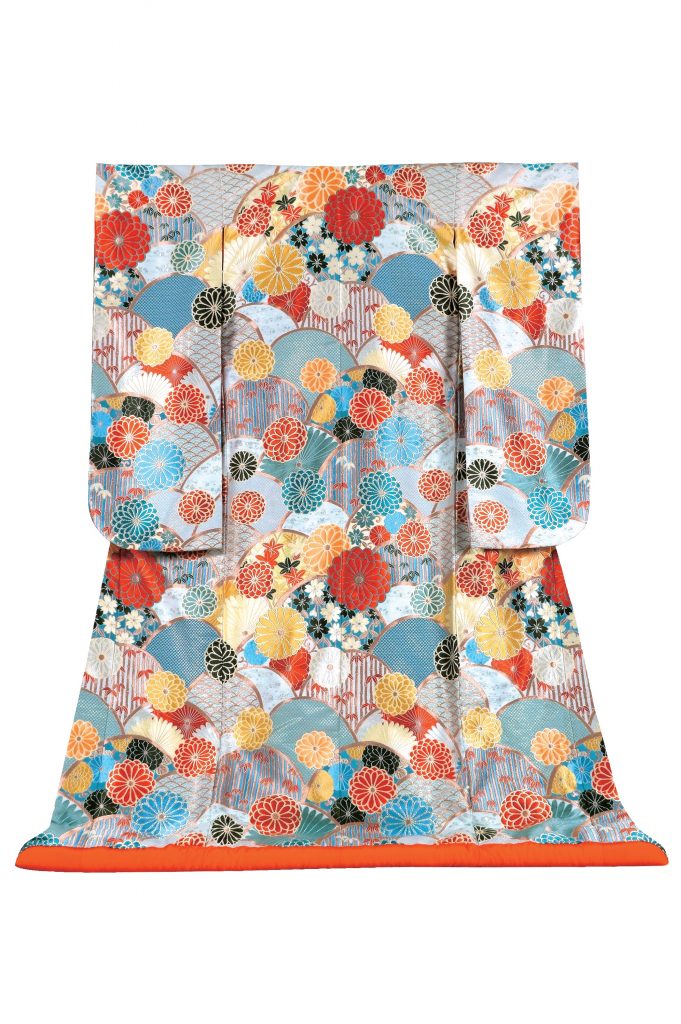 近年、和装の美しさが見直され、挙式で和装を着用されたり、前撮りで写真を残される花嫁が増えています。その中でも、特に人気なのが、『レトロモダン』な図柄です。柄行は、伝統的な「青海波」や「菊文様」などを使用していますが、どこか懐かしさの中に、現代的な新しさを感じさせてくれる配色や、図案が人気の秘密。掛下や小物のカラーコーディネートで、現代的なポイントをプラスしてご提案します。お洒落な花嫁様にお薦めの一着。
