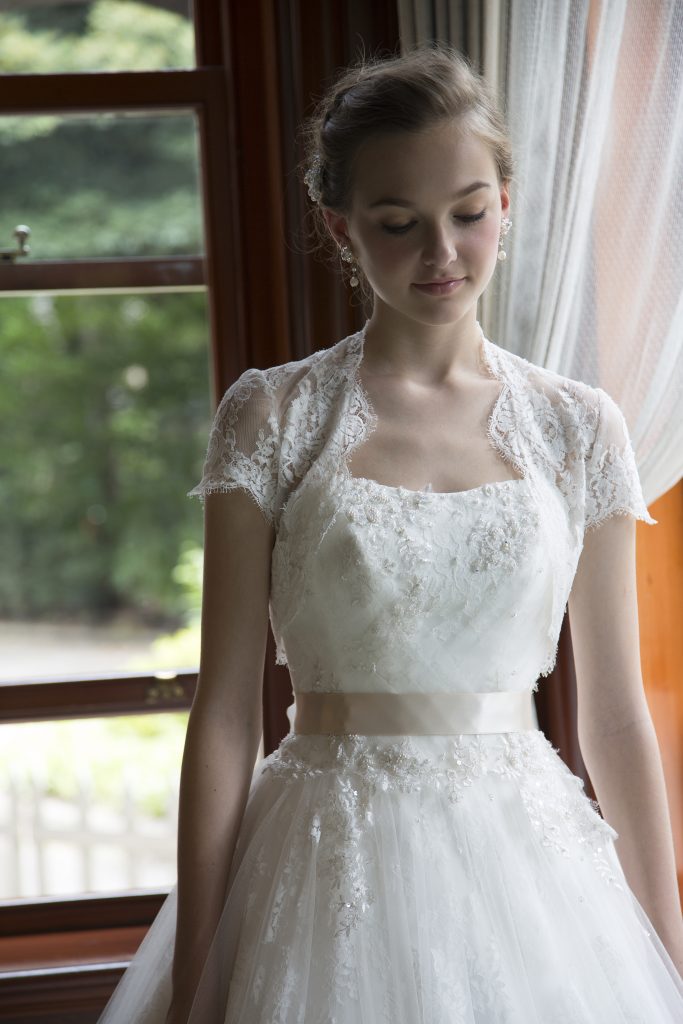 現在トレンドの上品でクオリティの高いレースを、ふんだんに使用したウエディングドレスに身を包んで、最高の一日を過ごしたい!…女性なら誰でも思うはず…今、一押しのブランド『カンタベッラ』の華やかさたっぷりのウエディングドレスは、上品なイタリアンリバーレースを贅沢に使用したプリンセスドレス。歩く度に優しく揺れる、透明感のあるチュールとレースは、女性が持っている品の良さを最大限に引き立てる極上の一着。ウエストのベージュリボンとレースボレロは、取り外しが可能なので、挙式やパーティー等のシーンに合わせてコーディネートが楽しめるのもドレス選びの楽しみの一つですよね。是非、イタリアンレースの上品な柔らかさをご体験ください。