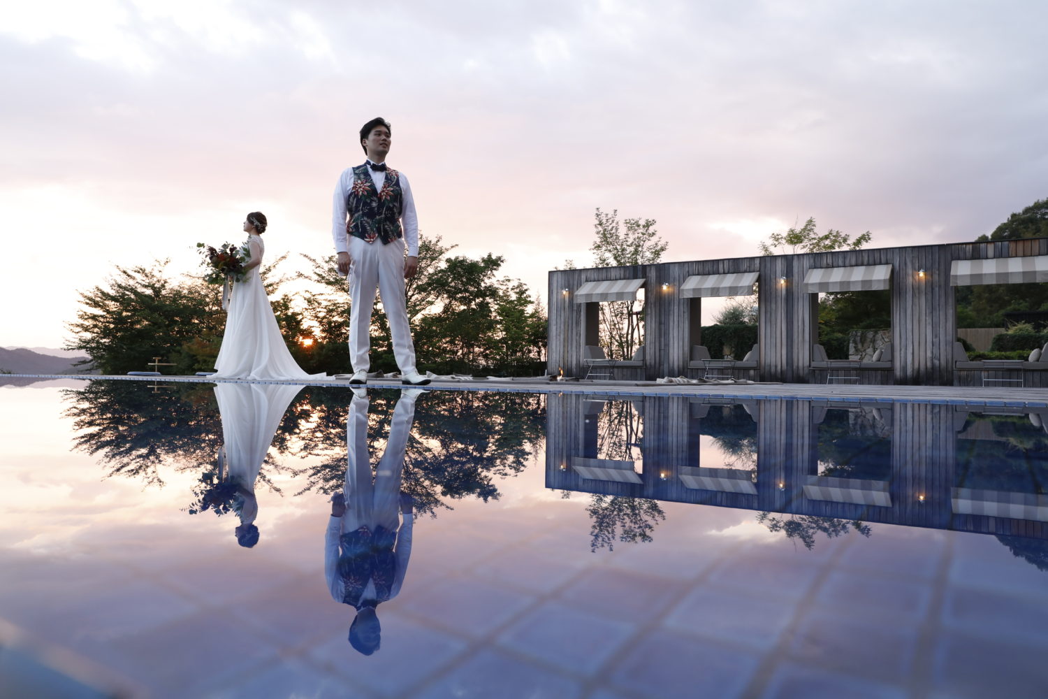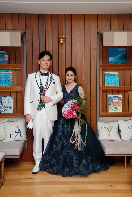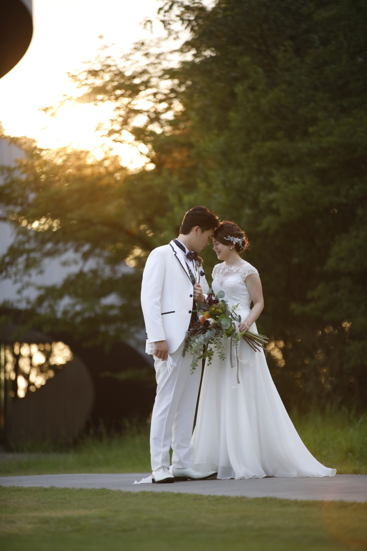 崇光さん、朋美さん、ご結婚おめでとうございます!挙式を終えられてから早いものでもう半年経ちますが、お二人とのお衣裳合わせを昨日のことのように思い出します。初めてお会いした日のこと、いつも仲の良いお二人の様子、前撮りのこと、エンドロール鑑賞会のこと…、私にとっても、素敵な思い出です。朋美さんが悩みに悩まれてお決めになったウェディングドレス。お二人の溢れ出る笑顔を拝見して「やはりこれを選んで頂いて良かった!」と心から思いました。タキシードもカラードレスもとても良くお似合いで素敵です!