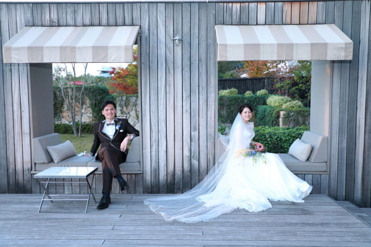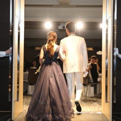 会場の雰囲気をイメージしながら選んでくださった衣裳は、ゲストの皆様に『素敵なドレス♡』『タキシードもおしゃれ‼』と大好評!とても嬉しかったです。どちらのドレスもとっても軽くて体に負担なく、何も心配せずに楽しめました!一生の思い出となる最高の時間を過ごすことができました。