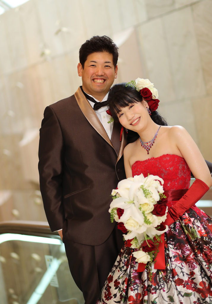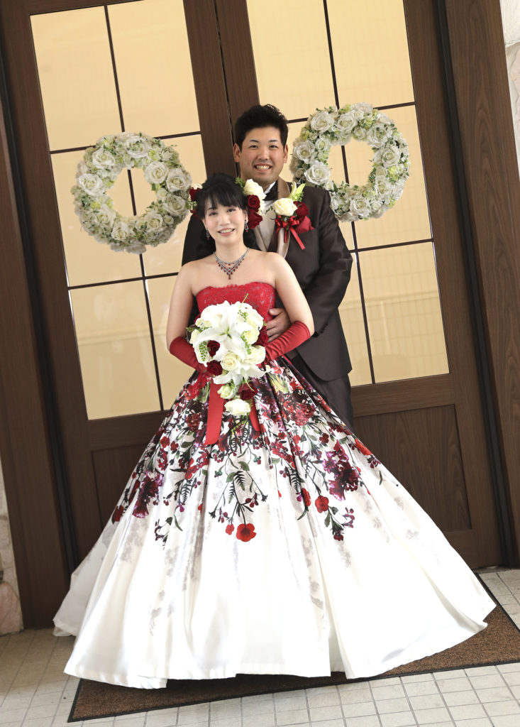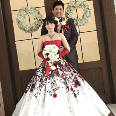 当日はドレスも和装もたくさんの方に褒めていただきました。特にカラードレスは自分では絶対にセレクトしなかったと思うデザインでしたが、「すごくお似合いです!」というコーディネーターさんの言葉を信じて大正解!皆さんからもとても似合うと褒めていただきました。本当にありがとうございました!