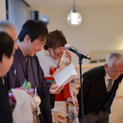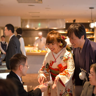 挙式は【ウエディングドレス】、パーティーは【引き振袖】をお召しになり、ご親族中心のアットホームなパーティーを楽しまれた -Eriさんの声- をご紹介いたします。