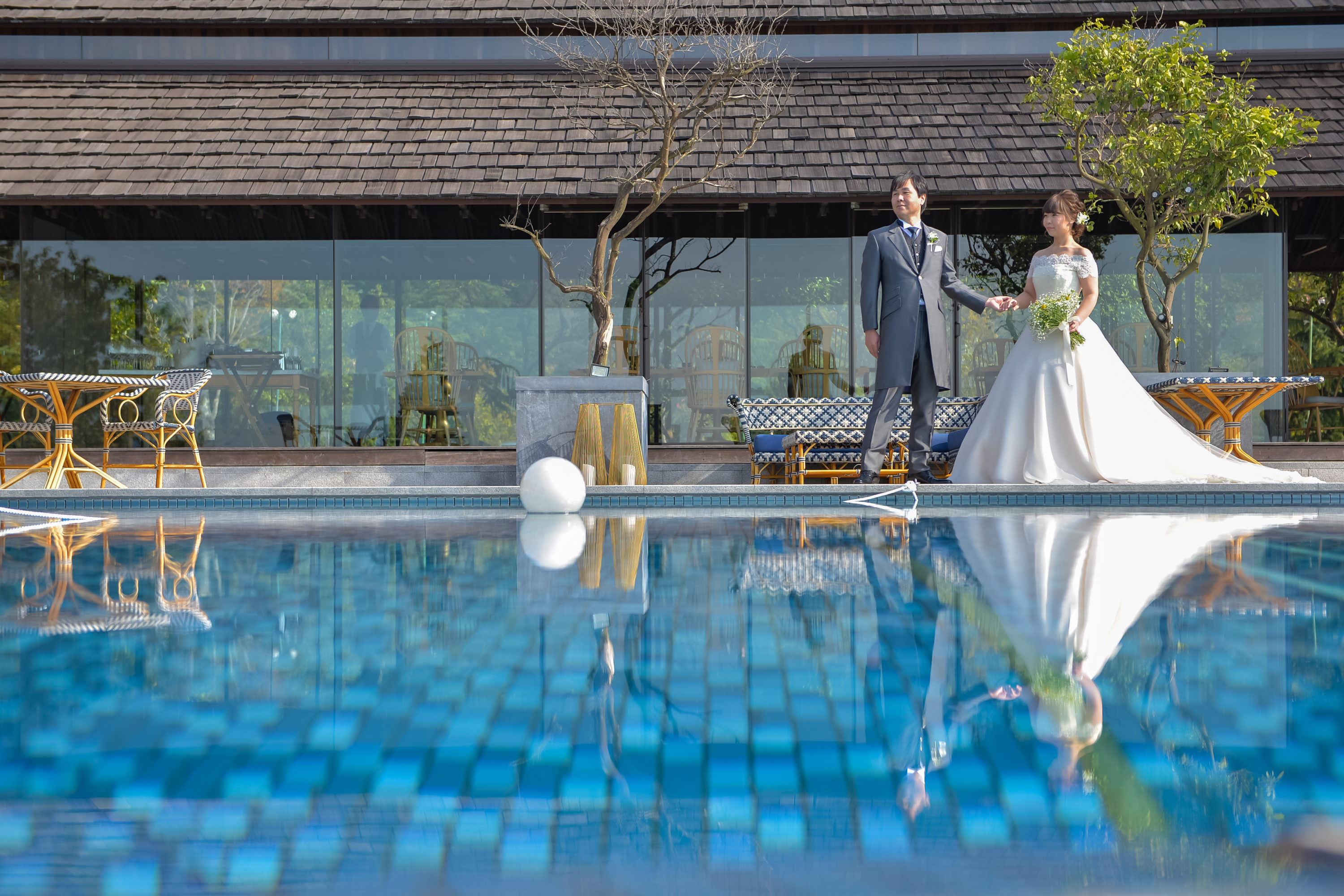 Takeshi さんの上品なフロックコートとシックな紋付もイメージにピッタリです。