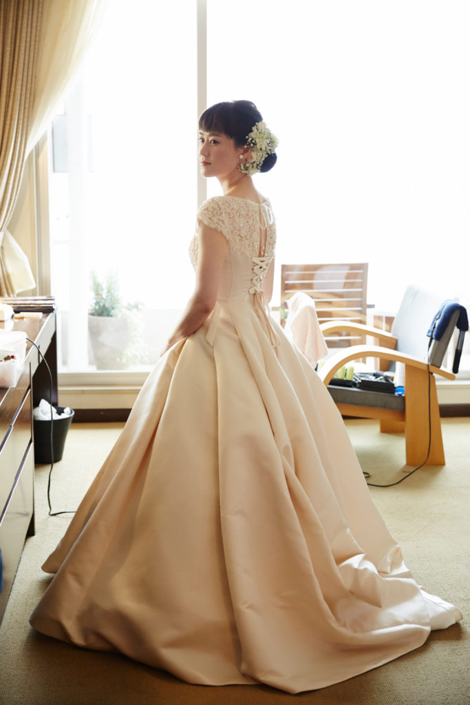 最後に選んだドレスは見た目や生成りの色合いも凄く気に入ったのですがコーディネーターさんが、このドレスは長崎の職人さんによって時間をかけて作られたものだと教えてくださり、長崎に祖母や親戚がいる私は、少し運命を感じました。